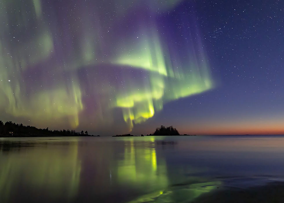 April 11 2018. Was this going to be the last aurora for the season? I saw no sign of the aurora while driving to my chosen location. Just a few minutes before arriving the Northern Lights put on a great show above the treetops. I hurried because I knew how quickly they can disappear.